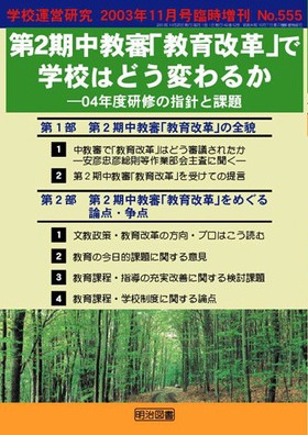 そこで、中央教育審議会に諮問された個々の課題に対して、どのような方向や結論が考えられるかを検討し、『学校運営研究』の臨時増刊号として発刊することにしました。これは、教育改革をめぐる状況を踏まえ、これからの「文教政策・教育改革の方向」についての新しい情報を各学校や先生方に提供するものです。