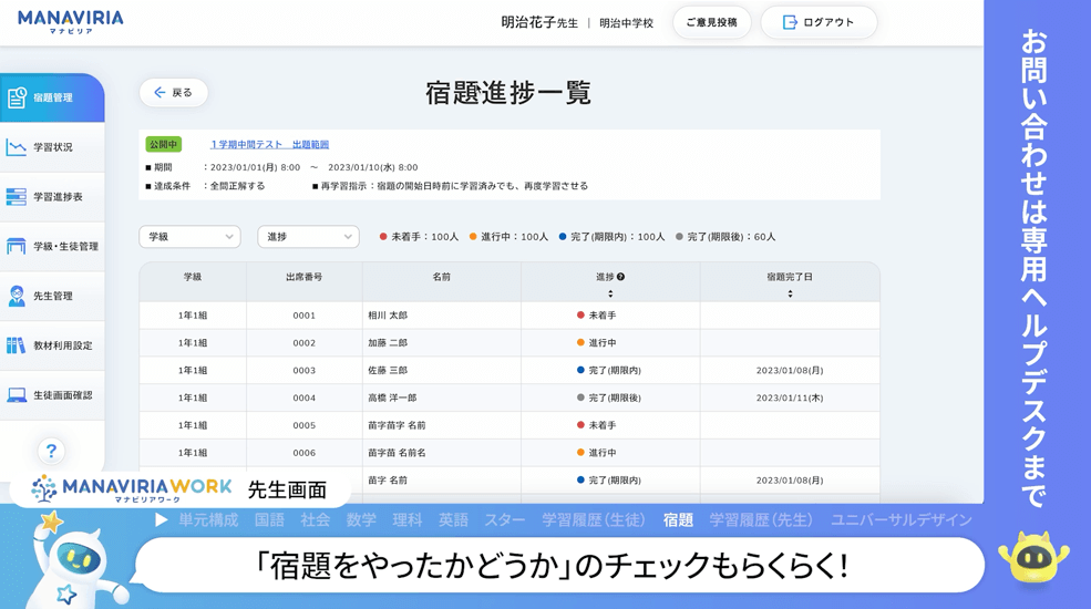 宿題やテストの作成、採点、集計の手間を削減!進捗や点数のチェックもラクラク