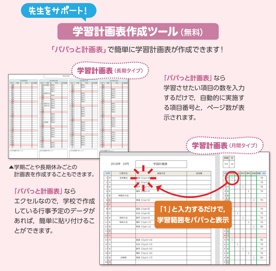 - 生徒が学習計画を立て,学習記録を記入することができます。