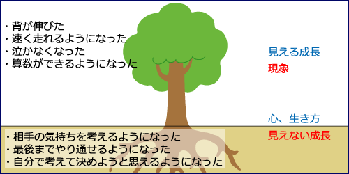 ところで、成長といっても色々な成長があります。身体的な成長や能力的な成長、精神的な成長など、見える成長とそうでない成長があります。ここで取り上げたいのは「見えない成長」です。